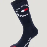 Calzino lungo da equitazione invernale con inserto tempestato di strass e dettaglio a righe distintive.